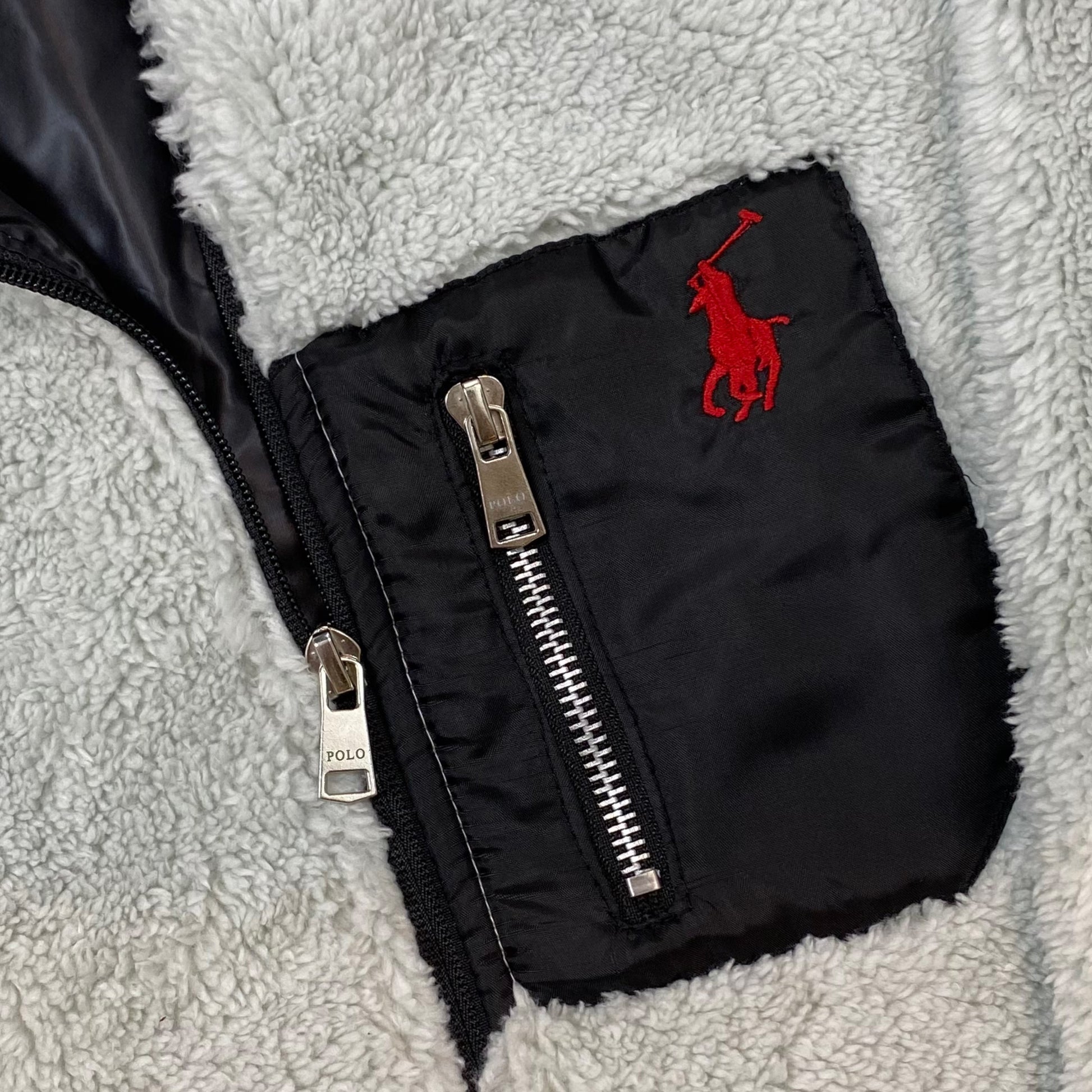 Keep your little one cozy and stylish with this soft kids sherpa fleece jacket. Made from premium-quality faux shearling fabric, it offers exceptional warmth and comfort for cooler days. The design features a full front zip closure, a contrast nylon chest pocket with a zip detail, and a high collar for extra protection against the chill.